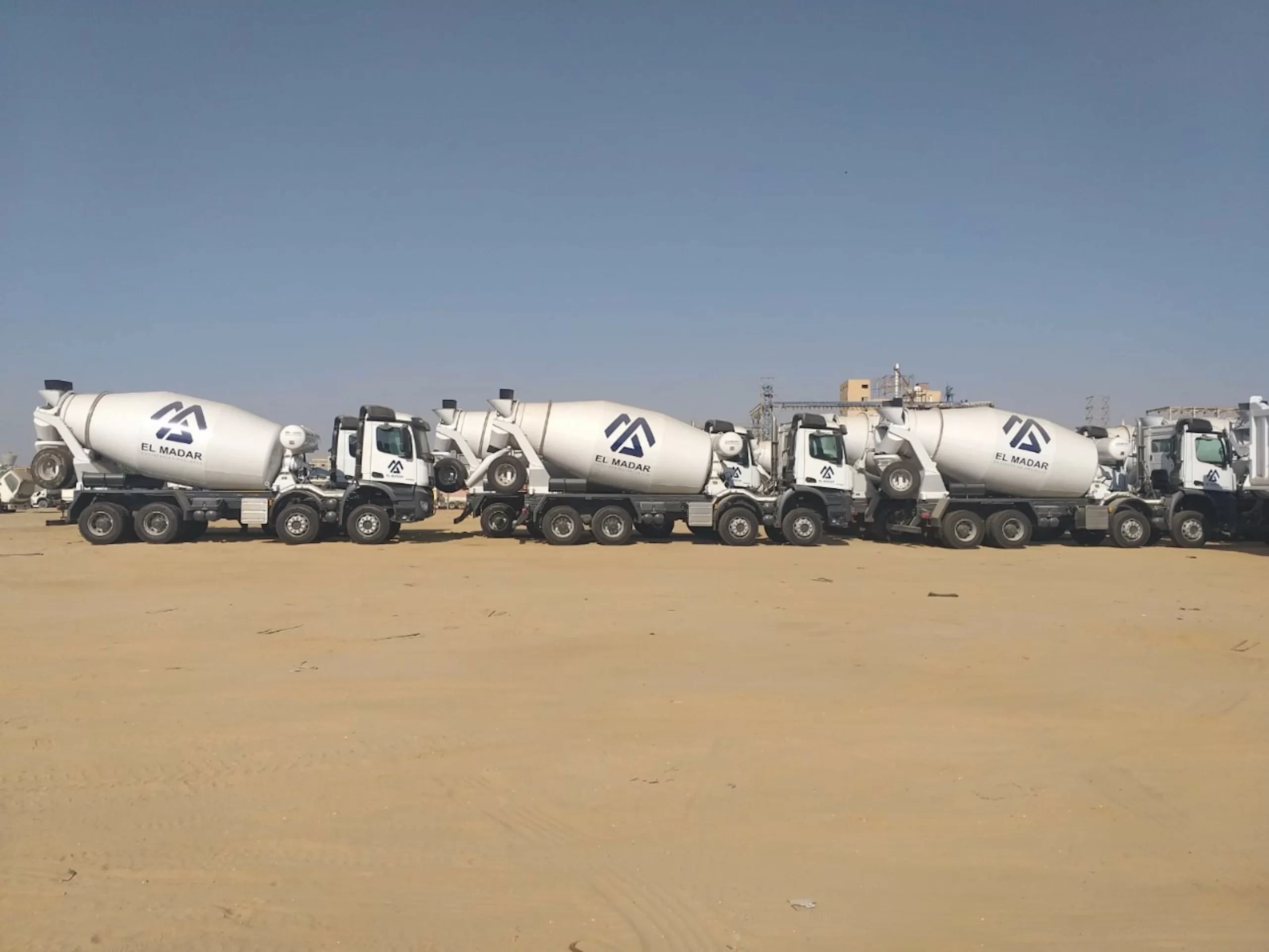 El Madar owns 6 Ready Mix Concrete Batch Plants: EGICS Concrete Mix Plant 80 m3/hr. EGICS Concrete Mix Plant 80 m3/hr. EGICS Concrete Mix Plant 120 m3/hr. MRM Concrete Mix Plant 120 m3/hr. MRM Concrete Mix Plant 120 m3/hr. MRM Concrete Mix Plant 120 m3/hr. 35 concrete mixer trucks 4 concrete pumps vary in length to supply concrete in remote places. All of them is equipped with a permanent laboratory to ensure the concrete quality, its conformity with the Egyptian standards & client requirements before delivery.